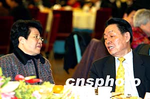 2004年僑界新春茶話會十四日在北京人民大會堂舉行,國務院僑務辦公室主任陳玉杰與全國政協港澳臺僑委員會主任郭東坡等出席。中新社記者:毛建軍