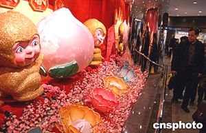 猴年春節即將到來,香港街頭商鋪﹑商廈酒店各種迎新春招貼紛紛亮相,為節日增添了喜慶的氣氛。圖為一家商場推出“財神到”及賀年裝飾吸引顧客。作者:洪少葵