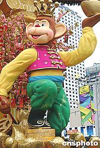 中國傳統(tǒng)年春節(jié)將至,正在香港添馬艦廣場舉行的環(huán)球嘉年華活動上,醒目的“齊天大圣”手托金元寶向人們恭賀新春。作者:錢興強
