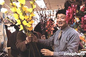 北京禮品工藝花卉市場在春節前夕生意異;鸨,銷售工藝花卉的攤主忙得樂不可支。中新社記者:鄒憲