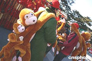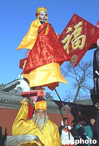 一月二十一日,第三屆北京民俗文化節暨第六屆東岳廟文化廟會隆重開幕,在廟會開幕式上來自河南新鄉的農民藝術家身背架桿,正在表演“驚、險、奇、巧”為特色的民間傳統節目“背樁”。中新社記者:張勤  北京地壇廟會拉開帷幕,本應猴年初一登場的猴們迫不及待提前鬧春。作者:徐曦弋