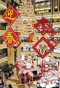 22日中國農歷大年初一,上海到處洋溢著節日的氣氛,各大商廈都披上節日的盛裝,迎接猴年第一批顧客。作者:湯彥俊