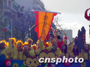 為了參加這次彩妝游行,展示華人新風采,法華社團進行了“總動員”,旅法僑界攜手,專門從中國訂制了彩車裝飾、彩旗、唐裝、鑼鼓等物品。游行中,六百名僑界青年首先亮相,他們手持鮮花,載歌載舞,盡情抒發(fā)對美好未來的憧憬。“開天辟地”、“女媧補天”、“水母娘娘”、“醒獅鬧春”等數(shù)十輛精心準備的彩車千姿百態(tài),而六千名華人華僑穿著節(jié)日盛裝進行傳統(tǒng)舞獅、舞龍、鑼鼓、舞蹈等表演,更是充分展現(xiàn)龍的傳人的風采。