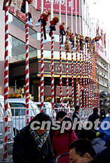 猴年春節期間,山東濟南的商家大打“猴子”牌,地處鬧市區的內地與香港合資四星級酒樓玉泉森信大酒店,為招徠顧客,在店前一排金屬旗桿上點綴上十幾個憨態可掬的吉祥猴。作者:王魯平
