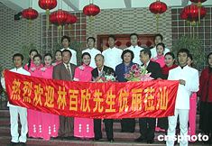 香港麗新集團董事局主席林百欣一月三十日抵達廣東汕頭,受到熱烈歡迎。一月三十一日他將參加在此地舉行的林百欣獎教獎學金發放儀式。林百欣先生多年來捐資六億多元,在內地興辦公益事業、教育事業。作者:王惠存