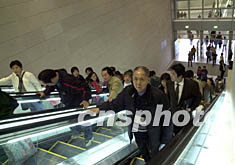 澳門新關(guān)閘邊檢大樓二日開始啟用,為了充分利用現(xiàn)有的空間,新邊檢大樓分為上下兩層,出境的旅客需通過扶梯從二樓前往出境大廳。中新社記者:李剛