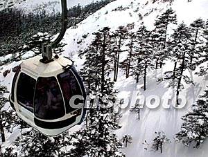 中國農歷猴年正月,乘坐纜車前往云南麗江玉龍雪山,展現在人們面前如詩如畫仙境般的景色,令人心曠神怡。中新社記者:趙振清
