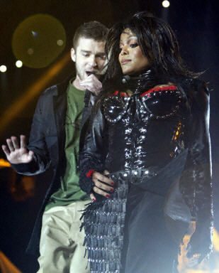 美國歌手珍妮-杰克遜與賈斯汀在美式足球超級杯大賽中場演出時公然露胸引發(fā)軒然大波,珍妮-杰克遜當?shù)貢r間2日晚上對媒體發(fā)表道歉聲明。她表示,撕扯上衣的點子是總彩排結束后才臨時決定的,想不到正式上場時擦槍走火而讓原本預期的演出效果走樣。圖為珍妮·杰克遜與布蘭妮的前男友賈斯汀一起演唱。