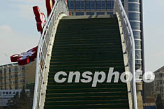 發(fā)生踩擠事故造成人員傷亡的北京密云云虹橋護(hù)攔被擠彎。中新社記者:宋吉河