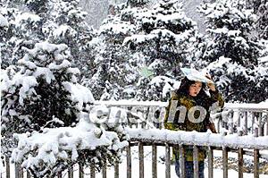 烏魯木齊白天的氣溫開始上升,最高溫度達到了零下二攝氏度,雪花剛落到地面不久化成了雪水,給烏魯木齊人的外出造成了困難,街上隨處可見打著雨傘,提著褲腳的行人。