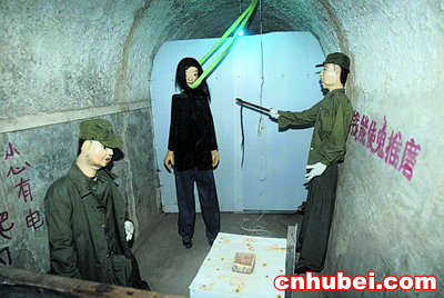在一女性“烈士”受刑點前,導游向游客介紹,只要投入硬幣,美蔣特務就可揮動鞭子抽打烈士。這時,一名游客向投幣箱內投入一元硬幣后,電動控制的“美蔣特務”果然揮鞭施刑,在“美蔣特務”背后的洞壁竟然寫著:“有錢能使鬼推磨”。
