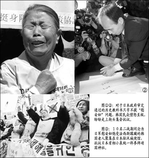 日本文部省2002年4月9日審定通過《最新日本史》教科書,這本由極端民主主義者編纂,于2003年8月開始在高中歷史課教學中實施的歷史教科書,對日本侵略者的暴行及強迫包括韓國婦女在內的廣大亞洲婦女充當日本侵略軍“慰安婦”的暴行避而不提。因此,《最新日本史》一經出臺,立即引起了韓國各方的嚴重抗議。