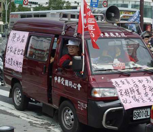 游行自下午1時許開始,參加民眾分乘160多輛汽車,車上插著旗幟、貼著標語,上書“愛中華,反‘臺獨’,反戰爭,要和平”、“拒領公投票,否決違法公投”等字樣。車隊從中華路與成都路交界處出發,浩浩蕩蕩穿行臺北市區主要街道,最后匯集到臺灣當局領導人的辦公場所前。游行民眾在這里高喊口號,書寫標語,表示抗議。