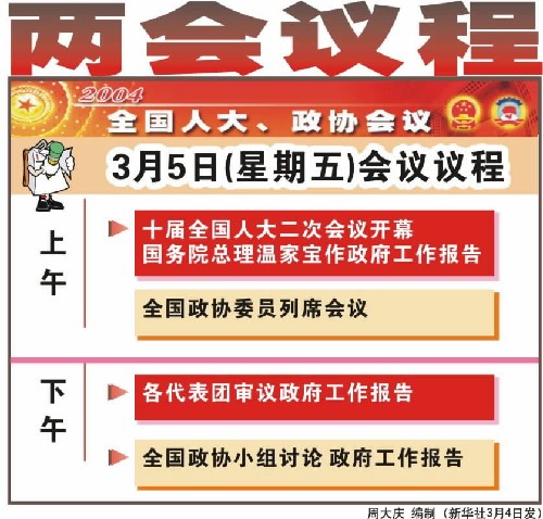 圖表:全國人大、政協3月5日(星期五)會議議程