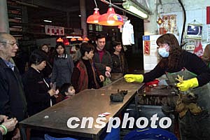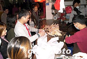 內地五日開始為澳門恢復活雞供應受到澳門市民的歡迎,經澳門衛生檢疫部門檢驗后雞只下午開始在街市銷售,聞訊后的市民紛紛到市場排隊購買,僅一個多小時,在佑漢街市銷售的四百五十多只活雞就基本售磬。作者:李剛