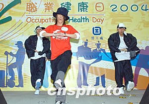 歌星麥浚龍3月6日在香港出席由職安局及勞工處舉辦之《職安健康日2004》開幕典禮活動,麥浚龍為大會載歌載舞獻唱其新歌「真功夫」。作者:鄧慶樂