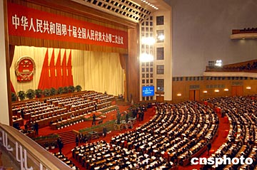 十屆全國人大二次會議今天下午在此間閉幕。出席會議的二千八百九十六名代表今天高票表決批準了政府工作報告。