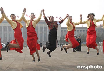 來自新疆的“高空王子”阿迪力表示,他要馬上坐飛機(jī)回去,為民間高空走繩藝術(shù)——“達(dá)瓦孜”籌辦一個學(xué)校,培養(yǎng)接班人。談及這次盛會,這位人大代表連說了三個高興——為“私產(chǎn)入憲”而高興;為親民、愛民、護(hù)民的領(lǐng)導(dǎo)集體而高興,為新的奮斗目標(biāo)而高興;接著又連說了三個好——好班子、好目標(biāo)、好盼頭!