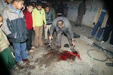 圖為巴勒斯坦警察在亞辛身亡的現場收查線索。