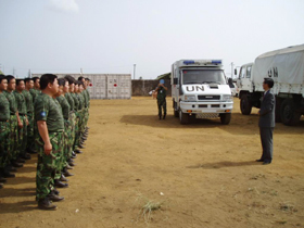 目前,我駐利維和運輸分隊的人員、裝備已全部到位,整個營地初具規(guī)模,近200臺各型車輛停放整齊、蔚為壯觀。中國維和人員訓(xùn)練有素,先進的裝備和整潔的營地在聯(lián)利團眾多維和部隊中首屈一指,成為聯(lián)利團維和部隊的一個亮點,受到當?shù)孛癖姾兔襟w的廣泛關(guān)注。利最大的報紙——《調(diào)查者》專門對我運輸分隊進行了整版報道,得到了利社會各界的普遍好評。
