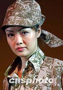 三月二十三日,在香港會展中心開幕的“2004香港國際春季時裝材料展”上,設計師推出的“迷彩”時裝帽別具特色。中新社傳真 錢興強 攝