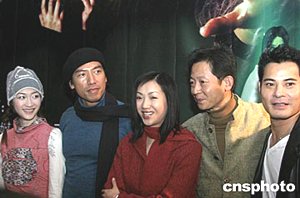 三月二十三日,新片《天黑請閉眼》在北京舉行媒體見面會。該片主要演員李小冉、張耀揚、吳倩蓮、王志文、黃智賢(從左到右)出席見面會。此片由拍攝過多部恐怖片的內地導演阿甘執導,將在四月一日愚人節期間上映。作者:高遠