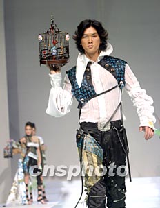 三月底,在北京舉行的中國國際時裝周的T字舞臺上,謝淑凌的時裝作品《中國風》再現老北京風情。中新社記者:史利
