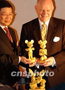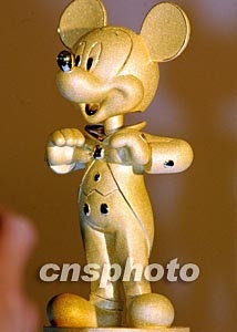 香港迪斯尼樂園三月三十日在香港舉行新聞發(fā)布會(huì),宣布該園將與著名珠寶品牌周生生連手,在香港迪斯尼樂園的美國小鎮(zhèn)大街營運(yùn)珠寶店,圖為在發(fā)布會(huì)上展示迪斯尼樂園獨(dú)家經(jīng)營鑲嵌鉆石的卡通形象。中新社記者:錢興強(qiáng)