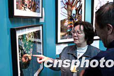 在北京植物園內展出的日本駐華大使夫人阿南史代的“京華名樹”個人攝影展,吸引了不少參觀者。四月七日,大使夫人阿南史代在現場親自為參觀者講解當時拍攝照片時的情景。中新社記者:盛佳鵬