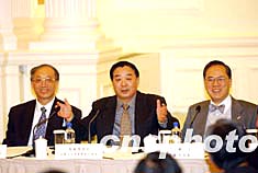 為使香港社會更多了解全國人大常委會就《基本法》附件一第七條和附件二第三條的解釋,香港特區政府和中央駐港聯絡辦公室,邀請全國人大常委會喬曉陽副秘書長、全國人大常委會法律工作委員會李飛副主任、國務院港澳事務辦公室徐澤副主任,專程到港出席座談會,聽取各界人士對香港政制發展的建議。圖為4月7日下午在香港禮賓府舉行的香港政制發展座談會。作者:洪少葵