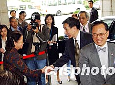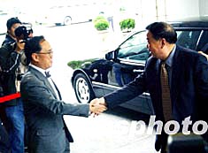 香港政務司長曾蔭權迎接喬曉陽副秘書長