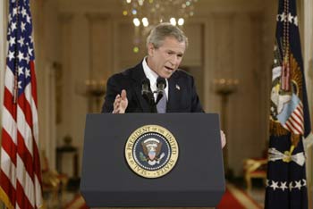 布什在美國黃金時間舉行實況轉播的記者招待會,是伊拉克戰爭開始以來的第一次。