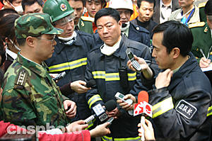 今天下午,重慶市對天原化工總廠殘存有液態氯的三個貯氣罐進行了人工引爆,三個貯氣罐目前已被摧毀,險情被排除。十五日晚重慶天原化工總廠發生氯氣泄漏爆炸事件,十五萬群眾被疏散。圖為重慶市武警消防總隊隊長王沁林在現場指揮。