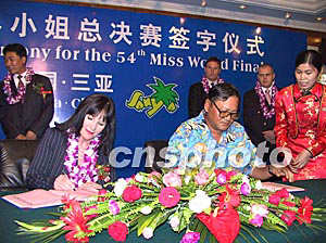 海南三亞市政府和世界小姐組織機構四月十九日在?谂e行第五十四屆世界小姐總決賽的簽約儀式,世界三大選美賽事之一的世界小姐總決賽(miss world)今年十二月將再度在三亞舉辦,三亞將成為世界上第二個連續舉辦世姐總決賽的城市。作者:王辛莉