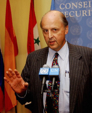 4月19日,美國總統布什(右)在白宮舉行儀式,提名美國常駐聯合國代表內格羅蓬特(左)在6月30日伊拉克權力交接后出任美國首任駐伊大使。該任命還將通過參議員的審議。內閣羅彭特現年64歲,將在6月30日美伊交權后走馬上任。