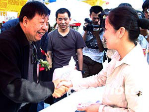 四月二十三日下午,著名相聲大師馬季來到北京地壇書市現場為讀者導購圖書并簽字售書,慶祝世界圖書日的到來。作者:韓藝冰
