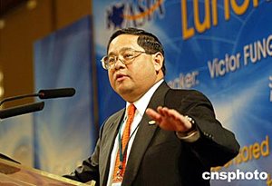 四月二十五日,出席博鰲亞洲論壇的香港利豐集團主席馮國經發表午餐演講。中新社記者:鄭萍萍