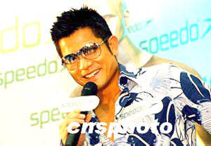 “香港活力動感大使”影視紅星郭富城,4月26日出席“世界最快泳衣Speedo Fastskin FSⅡ登陸香港”發布會,感謝該品牌支持“郭富城希望學校”籌款計劃。作者:洪少葵