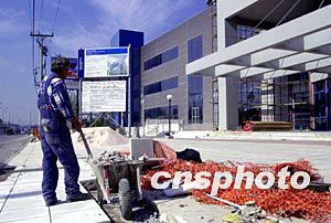 2004年雅典奧運(yùn)會(huì)的各項(xiàng)設(shè)施工程加緊進(jìn)行,新聞中心在日前總算落成,但內(nèi)外裝修工程依然艱巨。作者:田地