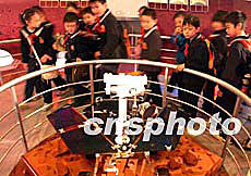 四月三十日,北京小學(xué)生正在中國科技館觀看由美國國家航空航天局(NASA)提供的“機(jī)遇號”火星車二分之一模型。這是“機(jī)遇號”火星車二分之一模型首次在中國公開展出。該模型由NASA制作,全世界僅有兩個(gè)。該模型與火星車實(shí)物在制作材料相同,但個(gè)頭較小,它也沒有全身武裝的科學(xué)探測儀器。中新社記者:張煒