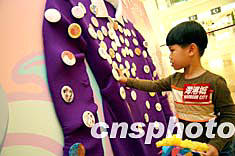 5月6日,香港小朋友在海港城舉辦“母親節(jié)率先表愛意”活動(dòng),將徽章掛在巨型衣服上,慶祝母親節(jié)。作者:洪少葵