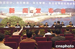 五月十日,中國核工業集團公司在北京人民大會堂舉行的“秦山核電二期工程1、2號機組全面建成”新聞發布會,介紹秦山核電二期工程2號機組5月3日凌晨1時15分正式投入商業運行的情況。作者:鄒憲