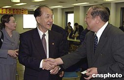 全國(guó)人大華僑委員會(huì)訪日?qǐng)F(tuán)一行五月十一日在東京與旅日僑界人士座談,其熱點(diǎn)匯集在為眾多新老華僑所共同關(guān)注的子女華文教育問(wèn)題。圖為率團(tuán)訪日的陳光毅主任向橫濱山手中華學(xué)校校長(zhǎng)潘民生詢問(wèn)相關(guān)情況。作者:王健
