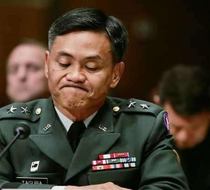 這是塔古巴少將就虐俘事件的調(diào)查首次公開作證。一同作證的還有美軍中央軍區(qū)副司令史密斯中將和國防部副部長坎伯恩。(春風(fēng))