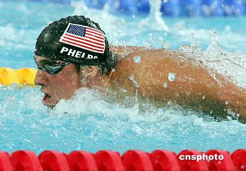 中新社雅典八月二十日電 雅典奧運會游泳項目二十日進(jìn)入第七個比賽日。在男子一百米蝶泳中,美國泳池天才少年菲爾普斯以五十一秒二五的成績再拿一枚金牌,這也是他在本屆奧運會泳池中獲得的第五枚金牌。