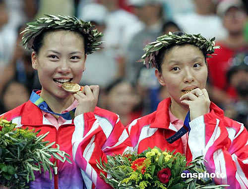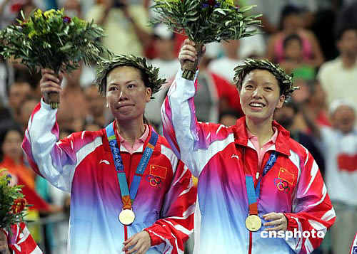 中新網(wǎng)8月21日電 在剛剛結(jié)束的雅典奧運會羽毛球女子雙打決賽中,中國選手張潔雯/楊維以2:1戰(zhàn)勝隊員高崚/黃穗,使中國代表團再增一枚金牌和一枚銀牌。三局的比分分別為7:15、15:4和15:8。