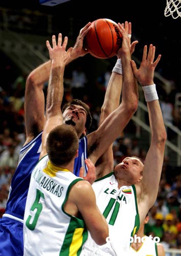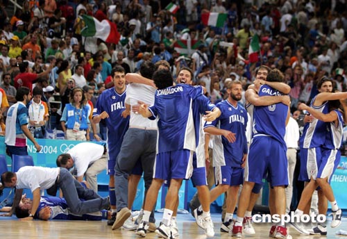| 當(dāng)?shù)貢r(shí)間8月27日晚,進(jìn)入雅典奧運(yùn)會(huì)男籃半決賽的四只球隊(duì)捉對(duì)廝殺。不可一世大有非冠軍莫屬的立陶宛眾球星,遇上更加神勇的意大利隊(duì)。雙方在快攻中展開三分球大戰(zhàn),結(jié)果以三分球準(zhǔn)確而著名的立陶宛35投僅15中,意大利卻28投18中。意大利5號(hào)BASILE投中11個(gè)三分球,砍下全場(chǎng)最高分31分。意大利終以100比91擊敗立陶宛晉級(jí)決賽,而決賽的對(duì)手是淘汰美國(guó)“夢(mèng)六隊(duì)”的阿根廷隊(duì)。中新社記者:任晨鳴