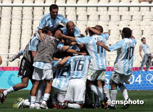 當地時間8月28日中午,雅典奧運會男子足球在主體育場舉行。實力強大的世界勁旅阿根廷隊以1比0擊敗同是南美的巴拉圭隊,獲得冠軍。在世界杯、南美杯等重大賽事上屢屢遭受敗績的阿根廷隊,終于獲得了一項被職業(yè)足球界視為“雞肋”的冠軍。阿根廷隊10號卡洛斯在上半場攻入全場唯一的進球,之后雙方都有多次機會改寫比分,但都無功而返;巴拉圭隊有兩名球員被紅牌罰下;獲勝后的阿根廷球隊在藍天白云下,在奧運會主火炬的映照下狂歡慶祝。中新社記者:任晨鳴
