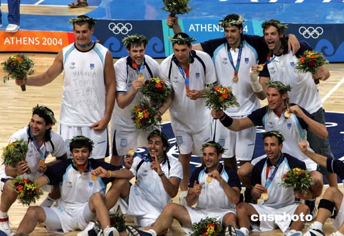 當地時間8月28日晚,在雅典奧運會男籃決賽中,技高一籌、經驗老道的阿根廷隊在NBA巨星吉諾比利的率領下,以84比69戰勝意大利隊,奪得分量頗重的男籃金牌。作者:任晨鳴