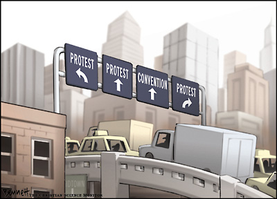這次示威游行匯聚了來自各行各業的人,包括越戰老兵,伊拉克陣亡士兵的家屬以及女權活動分子等,他們紛紛涌向紐約曼哈頓。(來源:基督教科學箴言報)